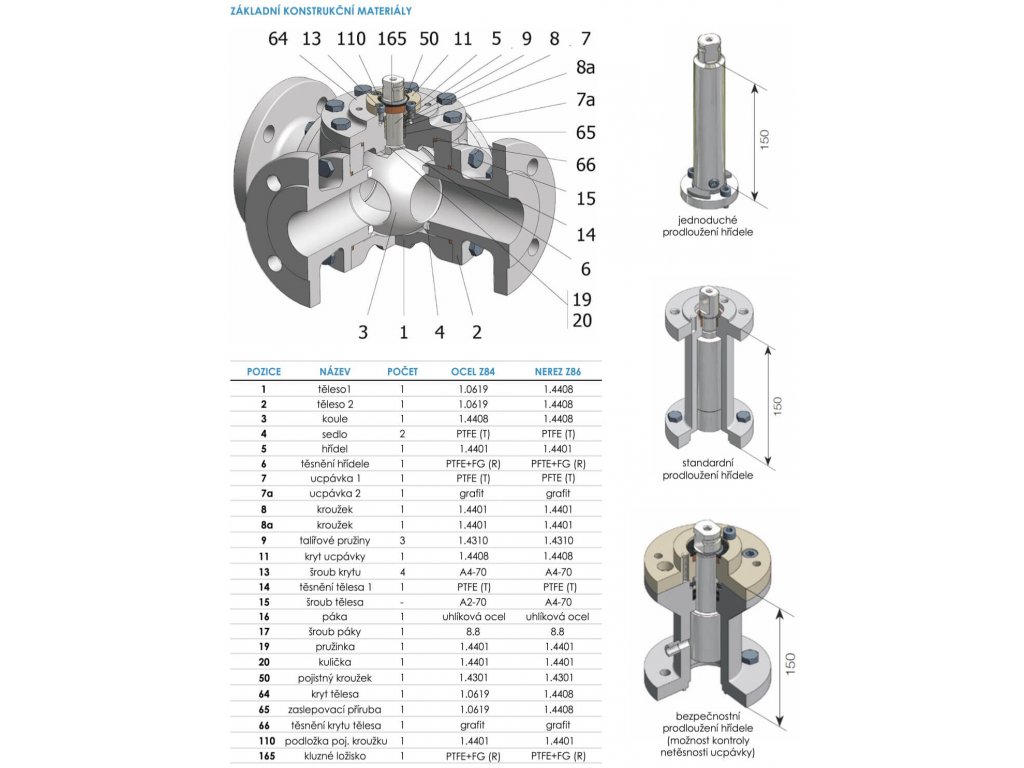 - z nehrdzavejúcej ocele 1.44008, PTFE tesnenie