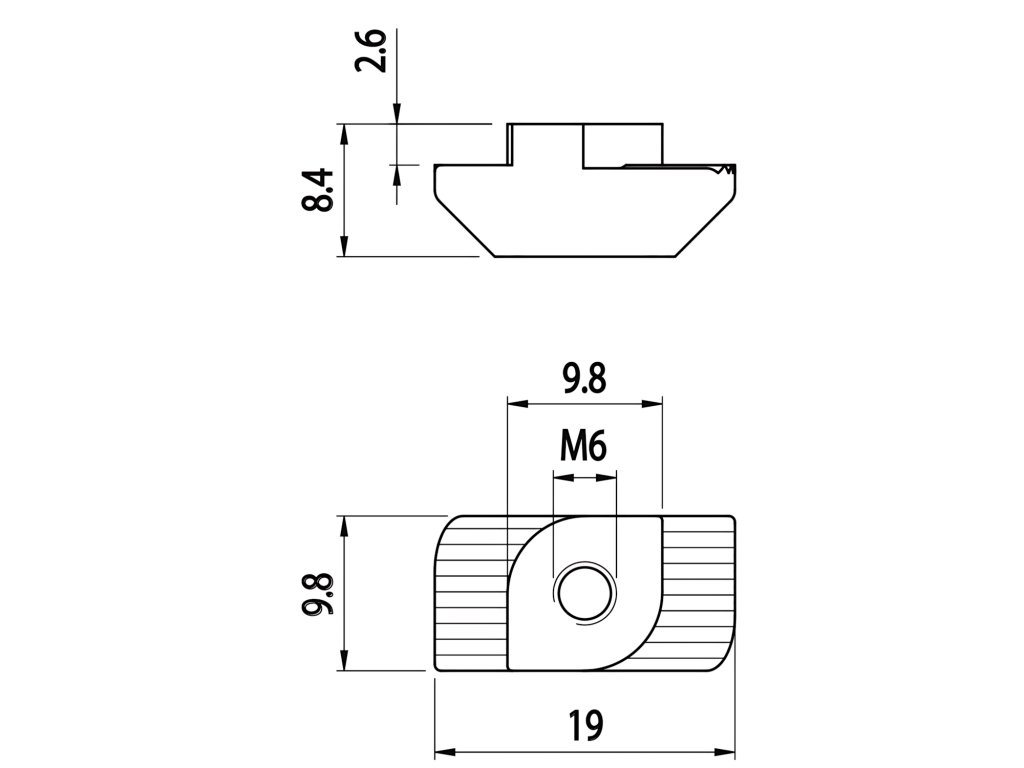 Matica so závitom M6 pre montáž do drážky profilov sérií BH 40-10, BH 45-10 a BH 50-10.