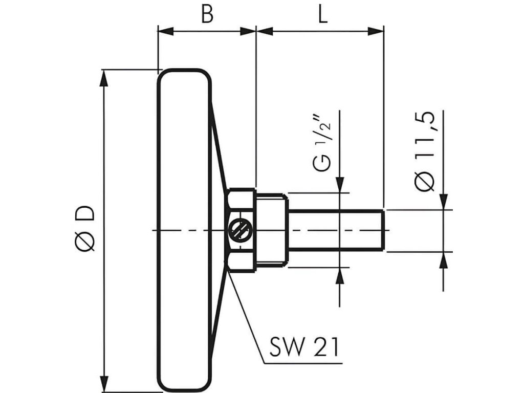 - Zadná verzia teplomera je k dispozícii s priemerom 63 a 100 mm