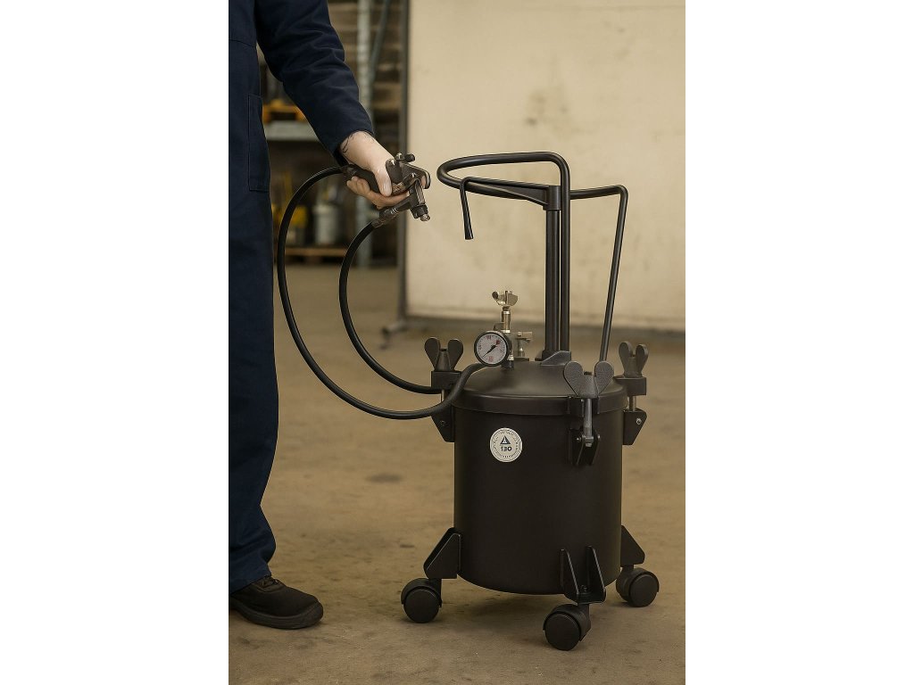 Systém tlakovej nádoby pozostávajúci z hornej nádoby s objemom 680 ml vybavenej prípojkou stlačeného vzduchu, regulátorom tlaku a škrtiacim ventilom. Určený na striekanie...