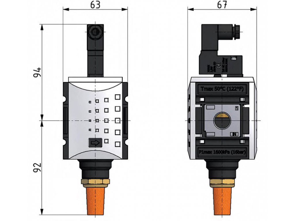 - Maximální vstupní tlak stlačeného vzduchu 16 bar