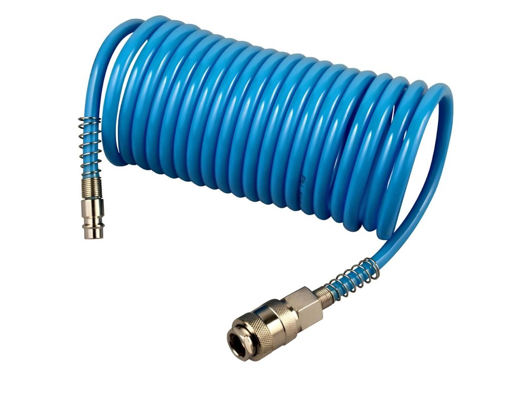 - spirálová hadice z polyuretanu PU určená pro připojení pistolové techniky a pneumatického nářadí ke kompresorům a zdrojům stlačeného vzduchu