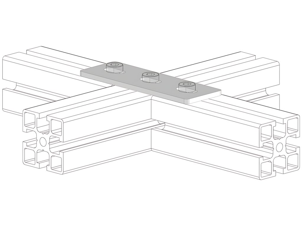 Spojovací deska určená pro kolmé spojování 3 profilů s hranou o šířce 40 nebo 45 mm.