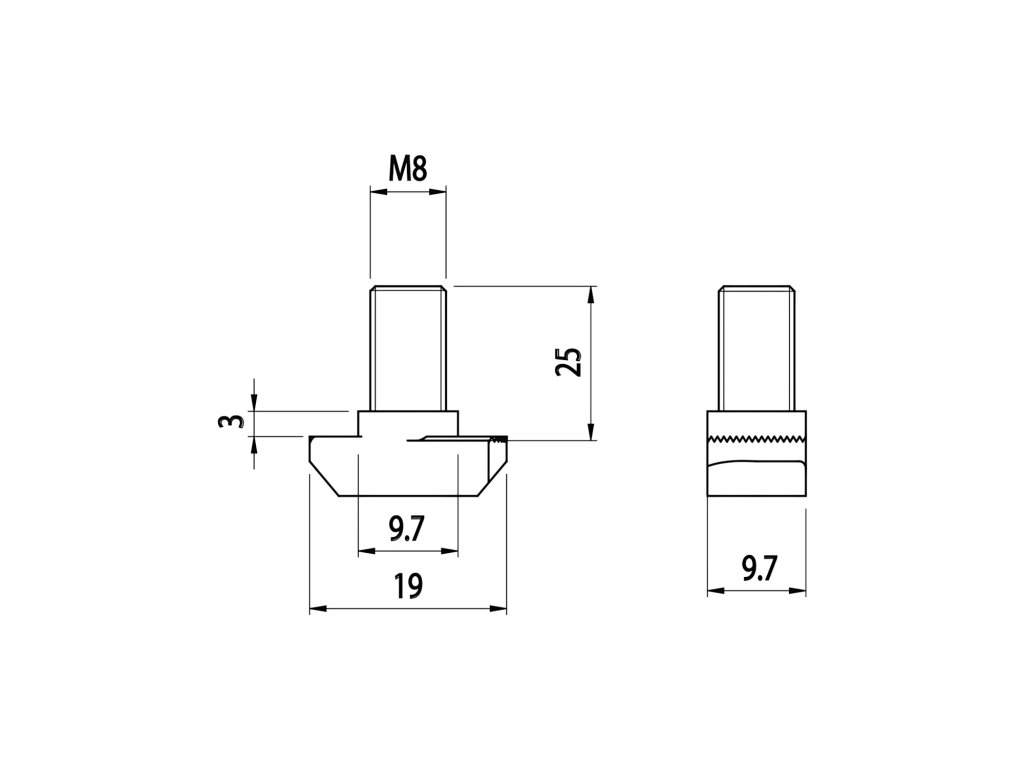 Fixační šroub s kladívkovou hlavou pro drážky profilů série IM 40-8.