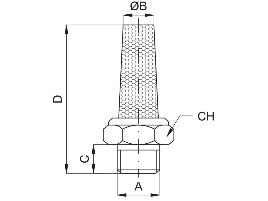 Tlumič hluku s prodloužením s vnějším závitem - bronzové provedení AE-18