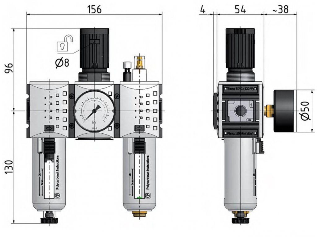 - Sestava regulátor tlaku s filtrem a olejovačem v jednom zařízení