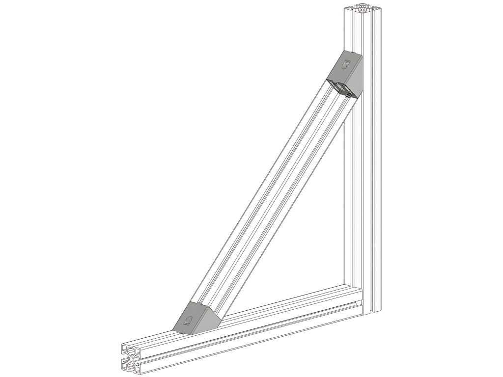 Úhelník pro vytváření příček s úhlem 45° ve strukturách z profilů sérií AC 40-8 a IM 40-8 s řezem 40x40.