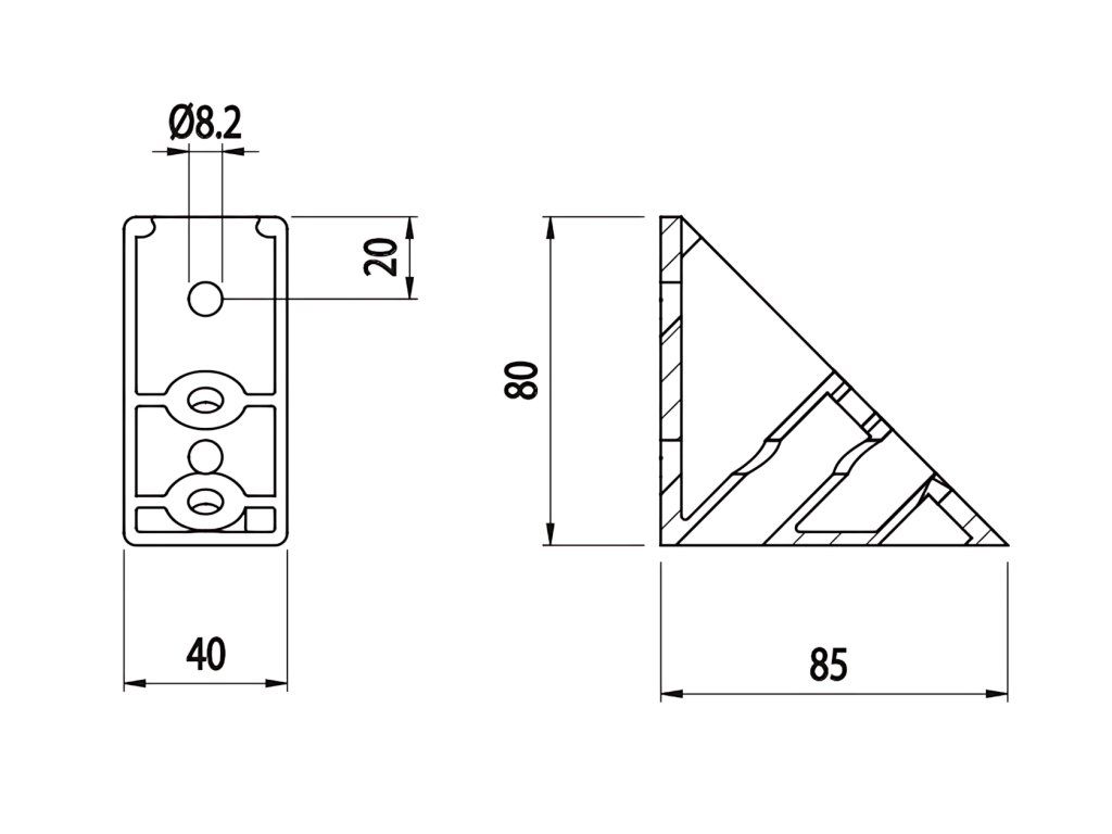 Úhelník 45°, 40x80, AC 40-8, IM 40-8