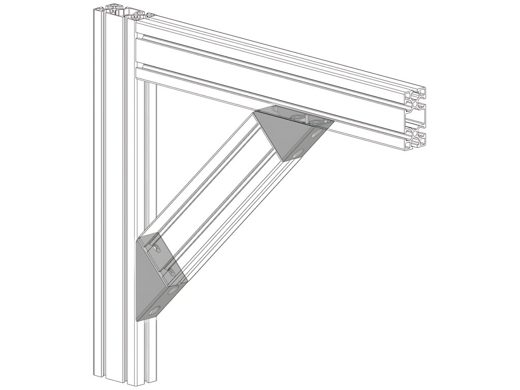 Úhelník pro vytváření příček s úhlem 45° ve strukturách z profilů sérií AC 40-8 a IM 40-8 s řezem 40x80.