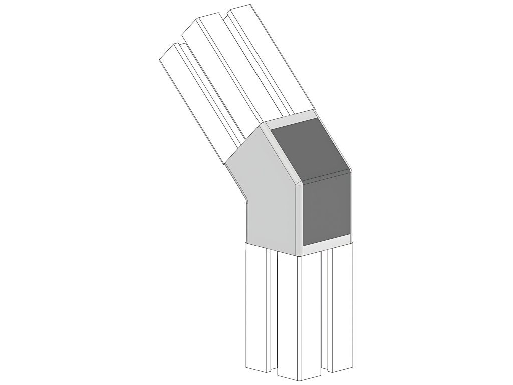 Úhelník pro spojování profilů série AC 45-8 s řezem 45x45 pod úhlem 45°.