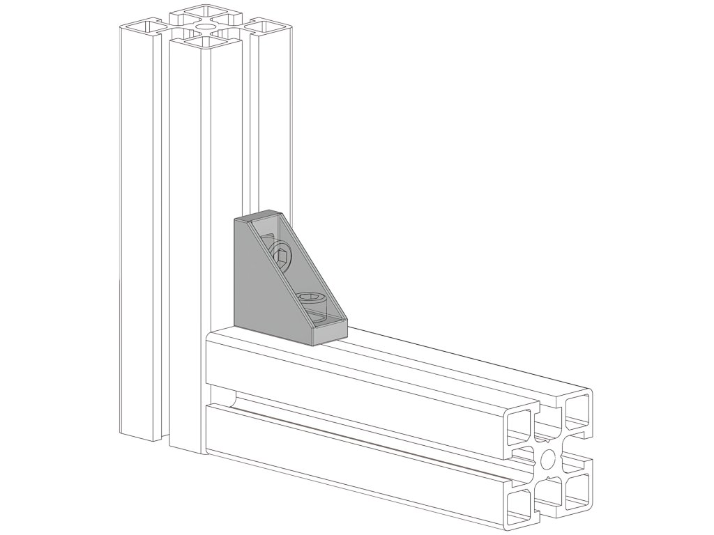 Univerzální úhelník s úhlem 90° a rozměry 18x40 pro spojování profilů z vnější strany pomocí šroubů M8x20.