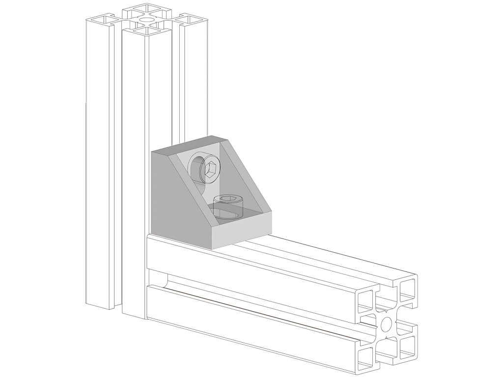 Univerzální úhelník s úhlem 90° a rozměry 28x27 pro spojování profilů z vnější strany pomocí šroubů M6x12.