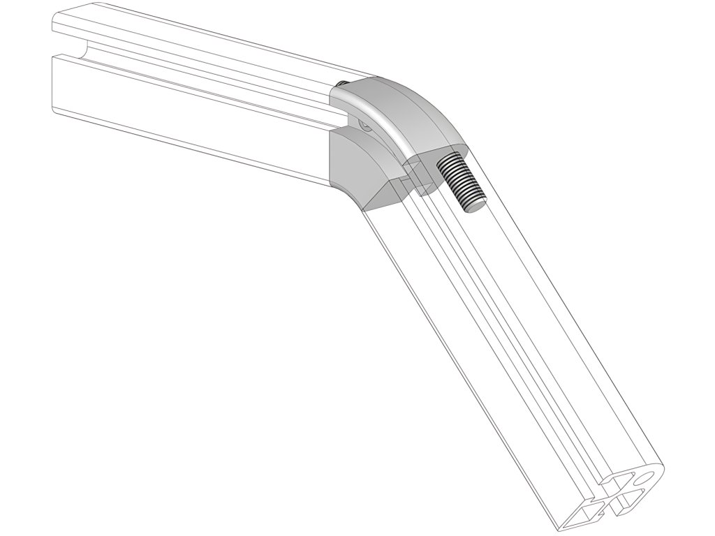Úhlová spojka pro spojování profilů série AC 45-8 s půlkulatým řezem 32x32 pod úhlem 45°.