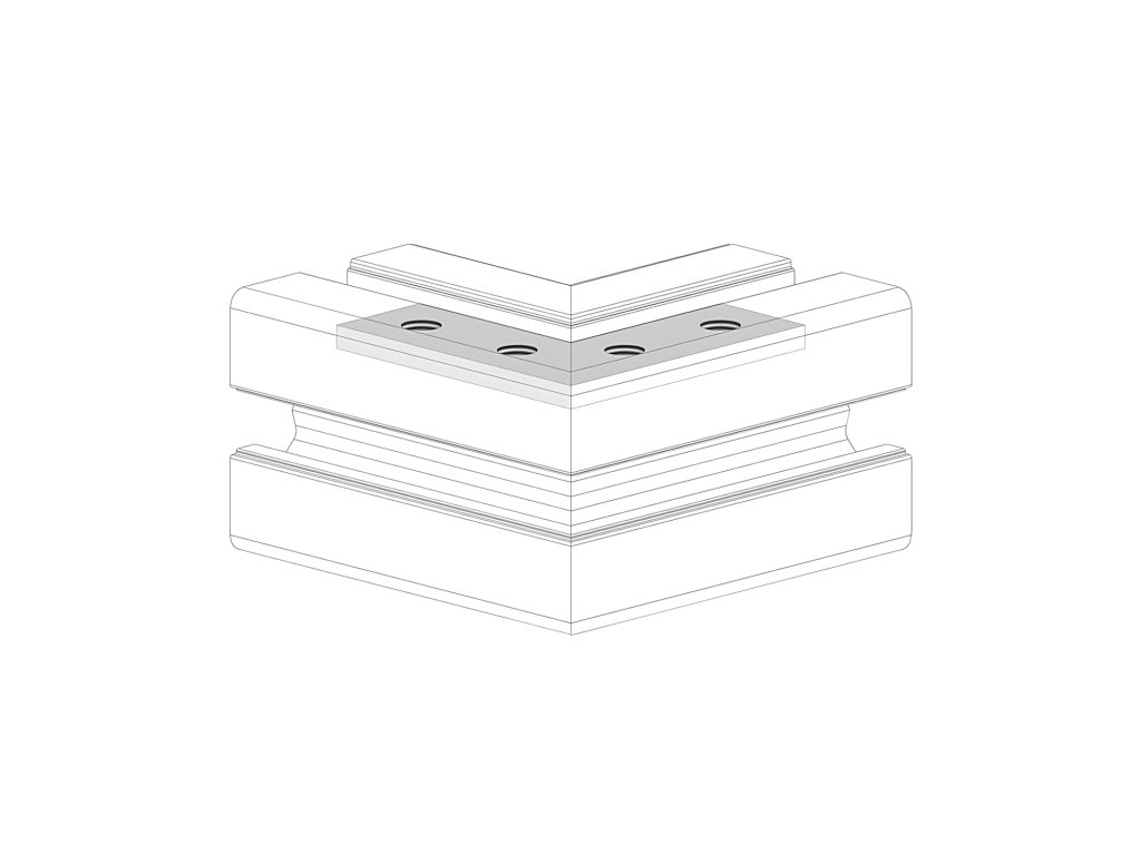 Spojka do drážky pro spojení profilů sérií BH 45-10, a BH 50-10 pod úhlem 90°.