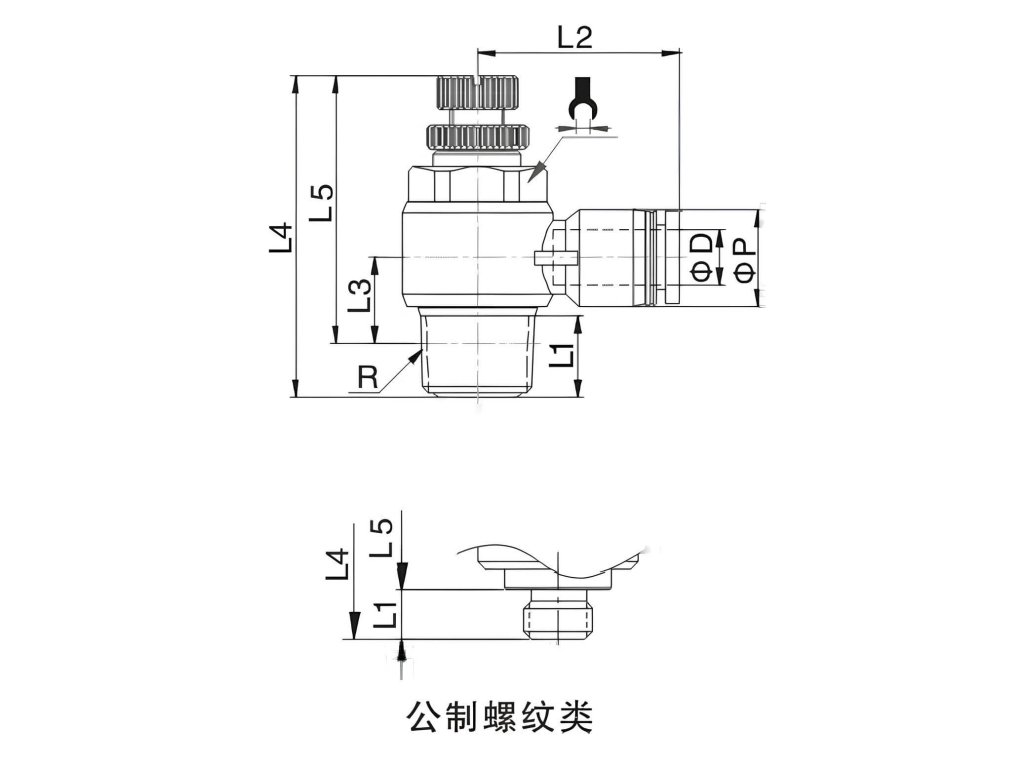 Úhlové škrtící ventily s vnějším závitem, škrcení na odfuku 10 - R 1/4"