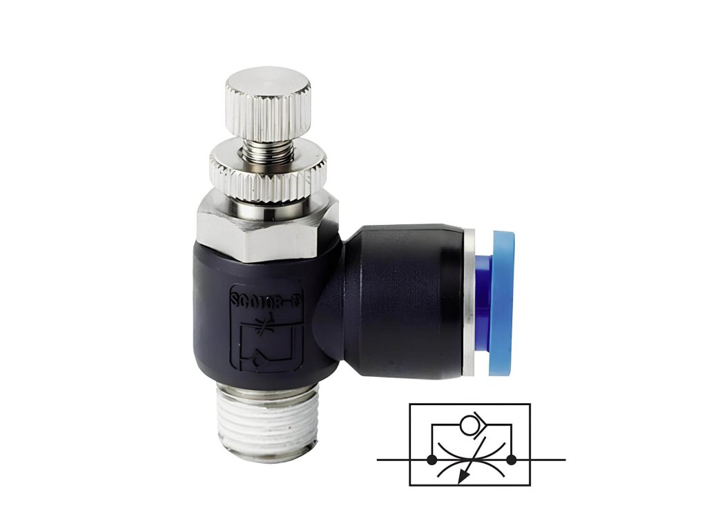 Úhlové škrtící ventily s vnějším závitem, škrcení na odfuku 12 - R 1/8"