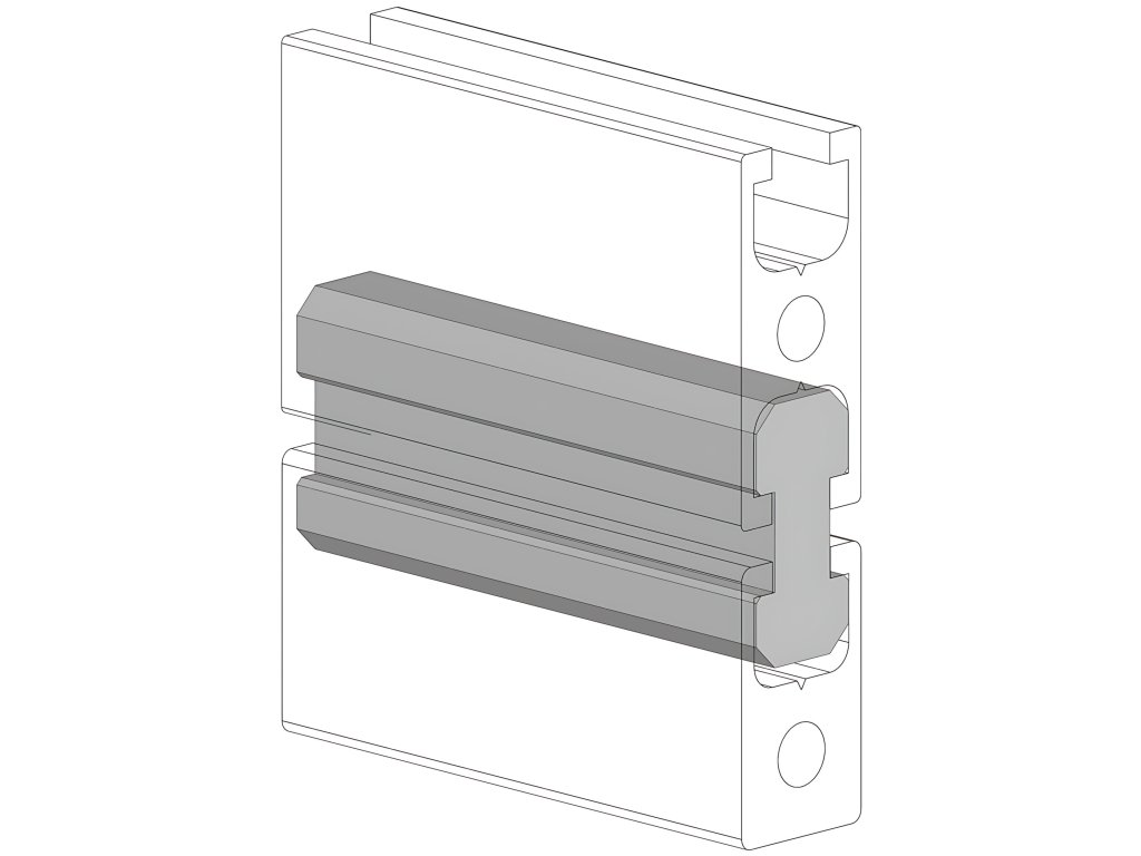 Hlavní aplikace pro vytvoření spojení horní části posuvných dvířek vyrobených z profilů série AC 30-6 s hranou řezu 13 mm k drážce profilu série AC 30-6.