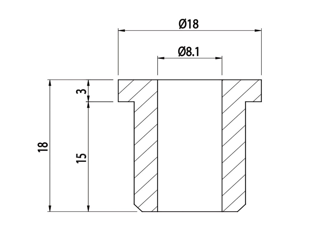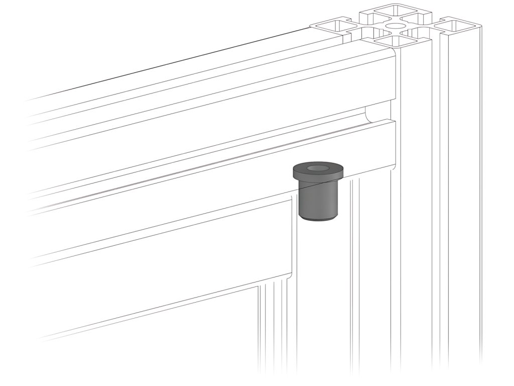Vložka pro vložení čepu skládacích dvířek s průměrem D=8 mm.