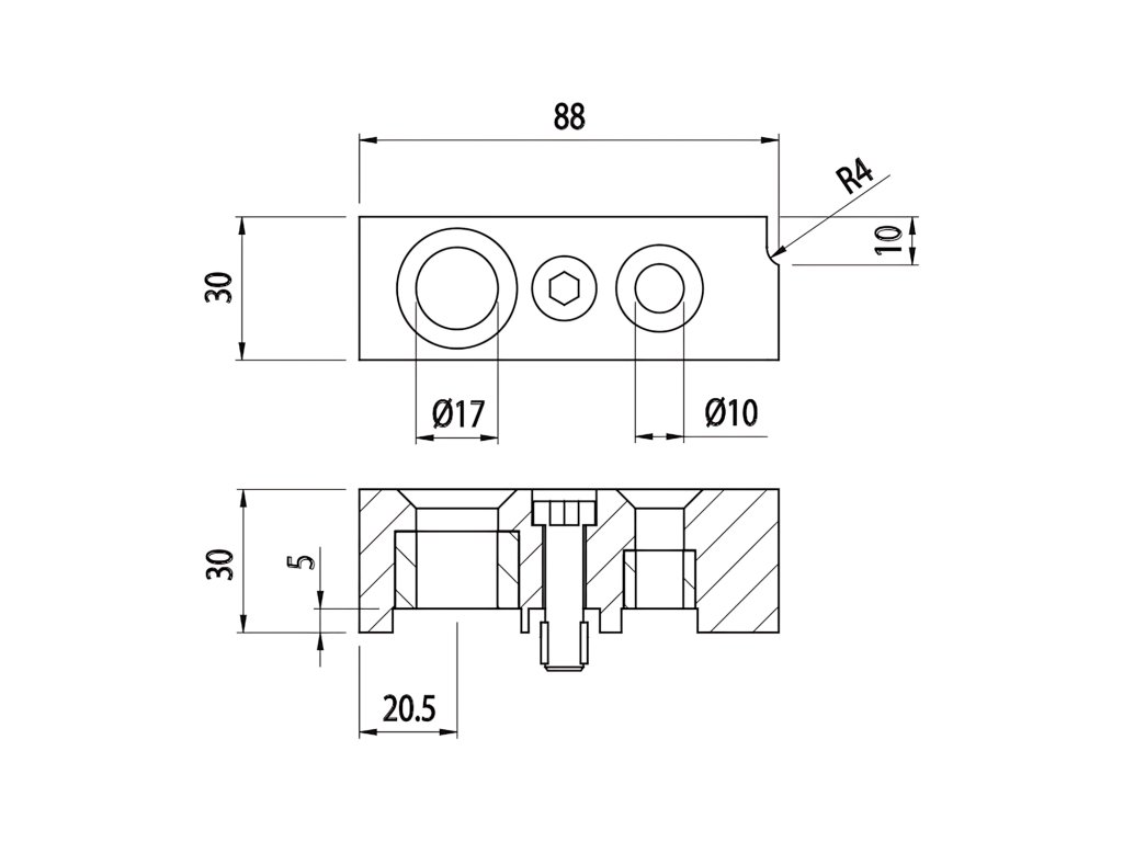 Přípravek pro přesné vrtání otvorů do hliníkových profilů s drážkami BH 40-10 a BH 50-10.