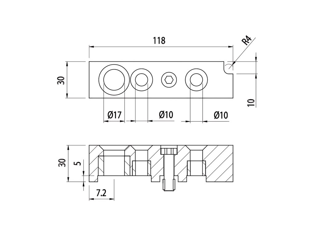 Přípravek pro přesné vrtání otvorů do hliníkových profilů s drážkou BH 45-10.