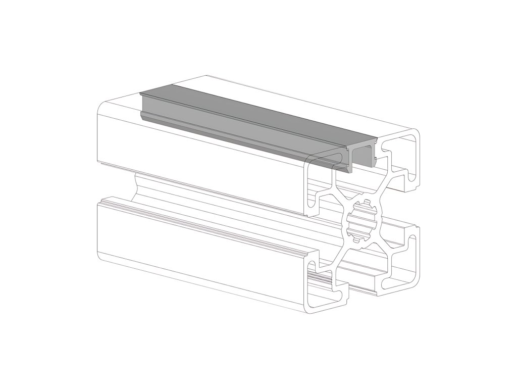 Záslepka z měkčeného PVC určená k uzavření drážky profilů sérií BH 40-10. 45-10 a 50-10 v šedé barvě.