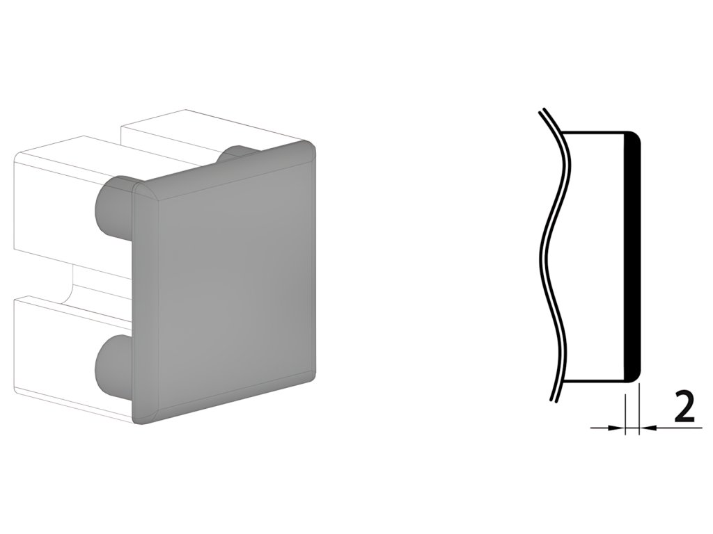 Šedá krytka z polyamidu PA vhodná pro uzavření konce profilu s řezem 30x30.