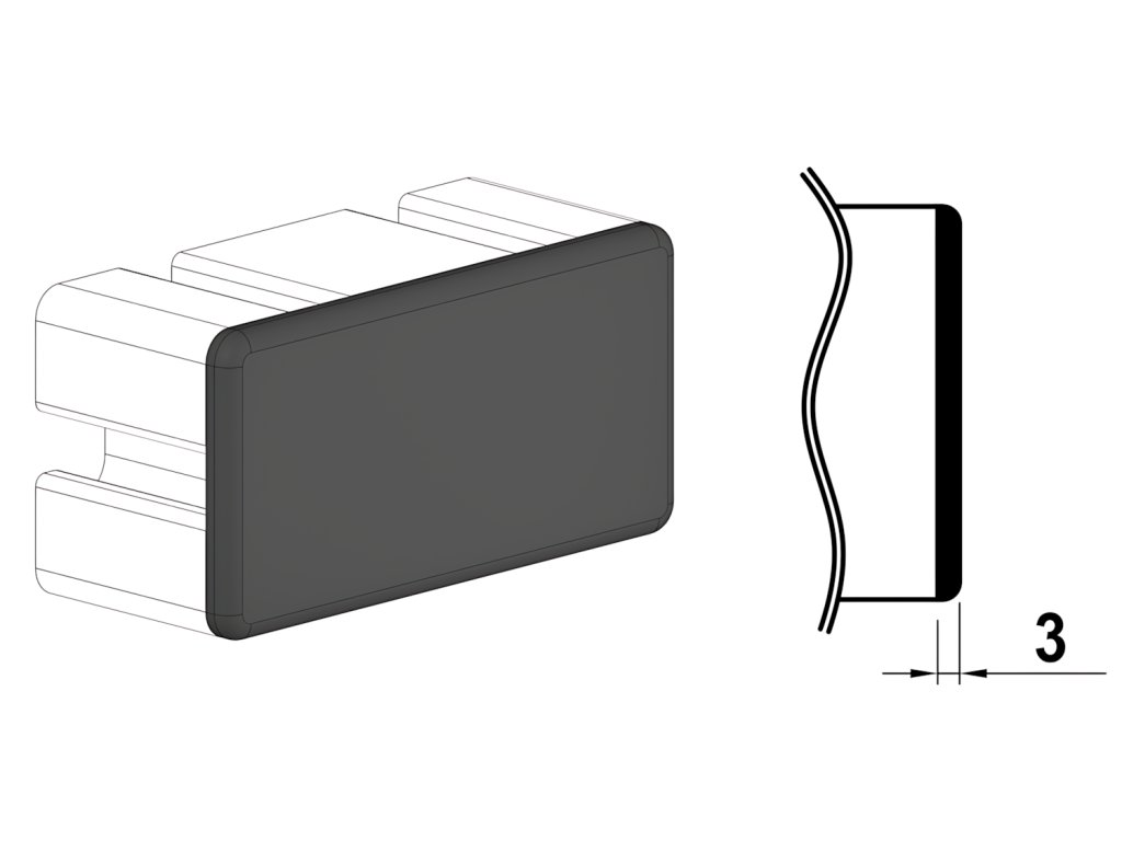 Černá krytka z polyamidu PA vhodná pro uzavření konce profilu s řezem 30x60.